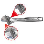 Cette clé à molette de qualité supérieure avec sa poignée ergonomique en caoutchouc thermoplastique résistant à l'huile et aux acides évite efficacement le glissement. Son guidage précis des mâchoires...