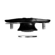 Le palier de coupelle d'amortisseur, également appelé palier de support de jambe de suspension, relie la jambe de suspension (amortisseur et ressort) à la carrosserie. Étant donné que les roues se déplacent lorsque l'on tourne le volant, la liaison sur l'essieu avant d'une voiture particulière doit pouvoir pivoter. Le palier à roulement (généralement un roulement à billes) de la coupelle d'amortisseur guide la jambe de suspension et est intégré dans un élément en caoutchouc-métal stable. Le caoutchouc permet également de légers changements d'angle par déformation et assure un amortissement supplémentaire des vibrations.