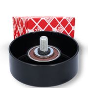 Les poulies de guidage constituent un lien important entre deux composants accessoires de la commande à courroie. Elles sont également appelées poulies de renvoi, et leur rôle consiste à augmenter l'angle d'enroulement de la courroie trapézoïdale à nervures sur la poulie suivante. En effet, la courroie trapézoïdale à nervures a besoin d’une certaine surface de contact afin de pouvoir entraîner les accessoires respectifs. Si l'angle d'enroulement est trop faible, l'adhérence n'est pas suffisante pour vaincre la résistance initiale, et il y a alors friction. Les poulies de guidage sont également appelées poulies de renvoi, car elles dictent le trajet de la courroie, qui s’étend en un chemin sinueux passant de la poulie du vilebrequin à l’alternateur, à la pompe de direction assistée, au compresseur de climatisation et à la pompe à eau. Les poulies sont généralement en métal ou en plastique. Elles s’usent également lentement, mais peuvent être affectées par une courroie trop tendue qui surcharge les roulements, ce qui peut parfois se traduire par un bruit de grincement.