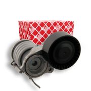 Habituellement, un tendeur de courroie se compose d'un support fixé au moteur, d'une culasse avec un élément amortisseur et d'une poulie de guidage. La tension du tendeur de courroie est généralement définie par un ressort qui est dirigé contre la pression de la courroie trapézoïdale à nervures. Le tendeur de courroie est nécessaire, car la courroie trapézoïdale à nervures est constamment tendue par la traction et se détend avec le temps. La différence engendrée doit être compensée. De plus, le tendeur de courroie réduit les vibrations causées par la rotation inégale du vilebrequin pour éviter d'endommager l'équipement auxiliaire. Malgré le tendeur de courroie, la courroie trapézoïdale à nervures doit être vérifiée et remplacée régulièrement conformément aux instructions du fabricant.