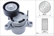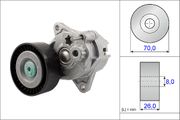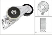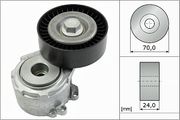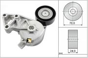 Un tendeur de courroie, également connu sous le nom d'unité de tension ou de poulie-tendeur, a pour tâche de maintenir sous tension la courroie trapézoïdale à nervures d'un entraînement à courroie. Ce n'est que lorsque la courroie trapézoïdale à nervures est tendue qu'elle peut transmettre le couple généré par le moteur du vilebrequin aux unités auxiliaires de manière efficace. Si, par contre, elle est trop lâche, elle commence à glisser sur la poulie, ce qui provoque souvent un grincement désagréable. Si la tension de la courroie est trop faible, l'usure de tous les composants augmente car la friction est plus importante. Au bout d'un certain temps, plus aucune force n'est transmise, ce qui provoque la défaillance de l'alternateur, de la pompe de direction assistée , de la pompe à eau ou du compresseur de climatisation. En plus de sa fonction de tension, le tendeur peut également servir de poulie de guidage pour augmenter l'angle d'enroulement de la poulie suivante. De tels serpentins permettent d'augmenter l'entraînement avec une seule courroie trapézoïdale à nervures.