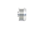 La poulie de roulement renferme un embrayage à roue libre qui se bloque dès que des forces agissent en sens inverse. Le lourd rotor de l'alternateur accélère donc uniquement dans une direction et peut ainsi continuer à tourner uniformément.