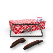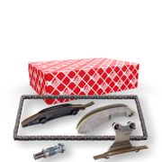 Les travaux sur la chaîne de distribution sont généralement longs et coûteux, c’est donc le moment idéal pour changer toutes les pièces d'usure. Dans ce cas, un jeu de chaîne de distribution est la solution idéale pour ne pas oublier de pièces lors de l'achat. Le contenu varie cependant entre les différents kits proposés. Normalement, ils contiennent toujours un nouveau tendeur de chaînes, et bien entendu, la chaîne de distribution. Les joints, les leviers oscillants et les coulisses ne sont cependant pas fournis dans tous les jeux de chaîne de distribution. Bien entendu, vous pouvez les commander séparément dans notre boutique.