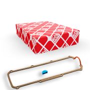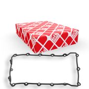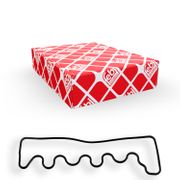 Le joint du cache-culbuteur assure l'étanchéité du cache-culbuteur, aussi connu sous le nom de couvercle de culasse. Le joint d'étanchéité est généralement en forme de U, en caoutchouc ou en plastique. Les joints en liège ou en matériaux pressés étaient monnaie courante pendant longtemps, mais sont progressivement remplacés. Le joint peut durcir et devenir poreux avec le temps et un fonctionnement prolongé, ce qui peut entraîner des fuites d'huile. Si de l'huile s'échappe du cache-culbuteur pendant le fonctionnement du moteur, le joint du cache-culbuteur correspondant doit être remplacé rapidement. Sinon, l'huile pourrait s'échapper et même s'enflammer sur les parties chaudes du moteur ou du système d'échappement. Les vis du cache-culbuteur sont également généralement fournies avec les joints appropriés, le tout faisant souvent partie d'un kit de joints pour cache-culbuteur.
